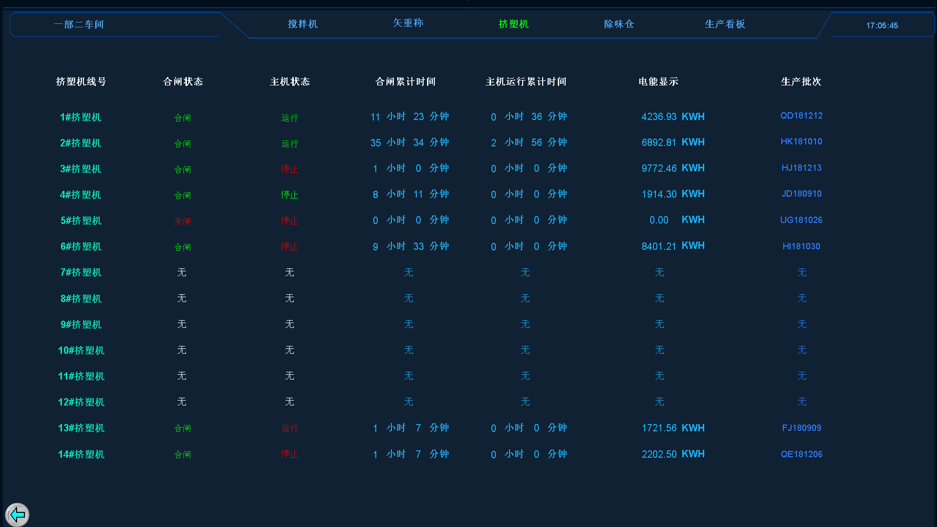 從生產(chǎn)的數(shù)據(jù)的角度主要是進(jìn)行的數(shù)據(jù)采集、整理和分析。形成報(bào)表等相應(yīng)的表單,通過對(duì)每一個(gè)生產(chǎn)線數(shù)據(jù)的分析,實(shí)現(xiàn)對(duì)生產(chǎn)組織,工藝指標(biāo)的嚴(yán)格控制,保證產(chǎn)品的質(zhì)量和降低生產(chǎn)能耗的生產(chǎn)目標(biāo)。 從管理角度主要指執(zhí)行下達(dá)的工單任務(wù)單能得到,準(zhǔn)確,無(wú)誤的執(zhí)行,調(diào)度生產(chǎn)過程所需要的各種資源,協(xié)調(diào)生產(chǎn)的相關(guān)運(yùn)作環(huán)節(jié),為企業(yè)管理人員提供生產(chǎn)過程的監(jiān)督保證生產(chǎn)的平穩(wěn)、持續(xù)進(jìn)行。 通過對(duì)高速攪拌機(jī)、矢重秤、螺桿擠塑機(jī)、均化倉(cāng)、自動(dòng)換網(wǎng)機(jī)的生產(chǎn)過程數(shù)據(jù)來(lái)判斷生產(chǎn)質(zhì)量和設(shè)備狀況等信息;