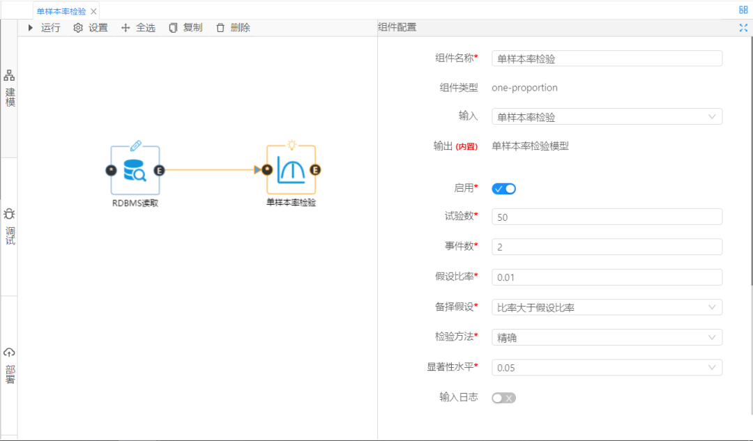 2  單樣本率檢驗分析組件及參數(shù)配置