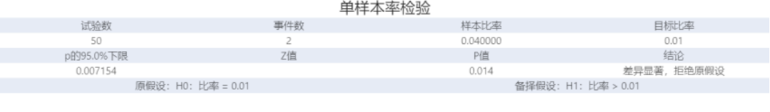 使用單比率檢驗可以估計二項總體比率,并將該比率與目標(biāo)值或參考值進行比較。可以在數(shù)據(jù)的單一特性僅包含兩個類別(如合格/不合格)時執(zhí)行使用此分析,確定總體比率是否不同于指定的假設(shè)比率和計算可能包括總體比率的值范圍。