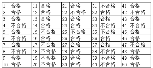 某醫(yī)療用品生產(chǎn)企業(yè),對生產(chǎn)的醫(yī)用防護手套外觀有一定要求,要求手套寬度符合≥80mm的標(biāo)準(zhǔn)。抽取10只手套,若有8只寬度都小于80mm,那么我們就會認為實際生產(chǎn)寬度小于80mm,不可采用目前設(shè)定的參數(shù)進行生產(chǎn)。若抽取10只,僅有1只小于80mm,那么我們并不會認為手套的實際寬度均小于80mm。因為,機器制造手套不可能100%保證每次都是完美的,個別小于80mm是正?,F(xiàn)象。所以,我們就可以通過單樣本率檢驗來判斷手套的實際生產(chǎn)寬度是否符合外觀標(biāo)準(zhǔn)。該手套生產(chǎn)企業(yè)一天能生產(chǎn)1萬只手套,將一天生產(chǎn)的手套作為整體,通過一定的方法抽樣得到50只手套,并對這50只手套的寬度進行檢測,寬度小于80mm的記作不合格(本案例需要每隔一段時間抽樣5只,共抽樣10次來形成樣本,以確保抽樣的涵蓋率),得到50次試驗手套寬度的檢驗結(jié)果,如表1所示。