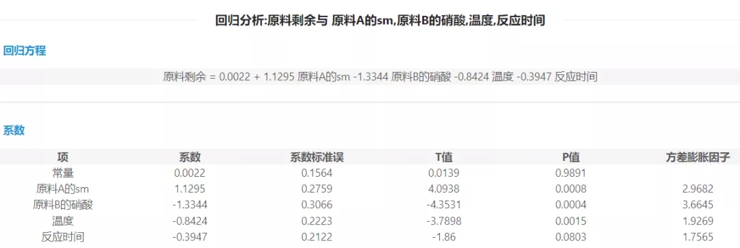 成本高低不僅影響著化工行業(yè)企業(yè)的利潤,更是其公司發(fā)展壯大的一個制約因素。某有機新材料企業(yè)想要減少化學反應中的原料剩余并預測在某種反應參數(shù)變量取值下的原料剩余。原料剩余越少,成本利用率越高。把我們想要研究的對象原料剩余(Y)作為因變量,選取了4個主要影響因素:原料A的SM(X1);原料B的硝酸(X2);溫度(X3);反應時間(X4)。并進行22次試驗。基于22次實驗數(shù)據(jù)進行多元線性回歸。