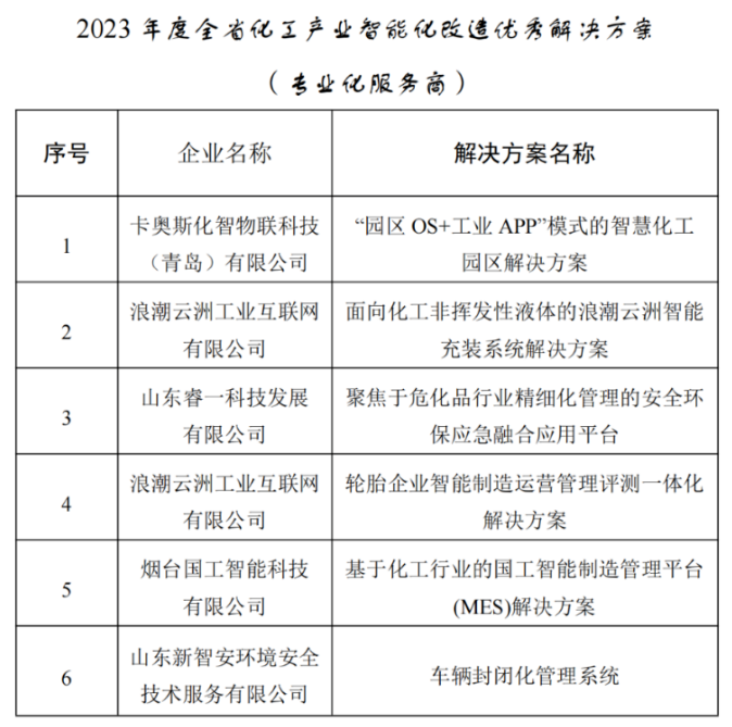 《山東僅5家!國(guó)工智能與海爾、浪潮同時(shí)被認(rèn)定為化工產(chǎn)業(yè)智能化改造優(yōu)秀解決方案專(zhuān)業(yè)服務(wù)》